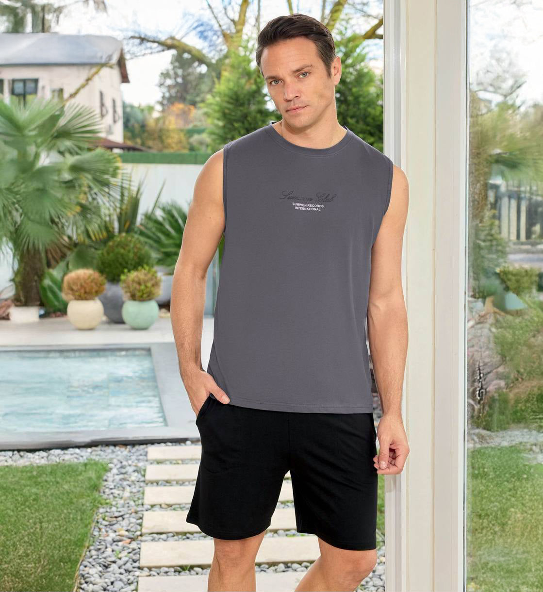 Sleeveless Cotton PJ Set for Men Experience ultimate comfort with this minimalist sleeveless pajama set, crafted from breathable cotton for year-round wear. The relaxed fit and lightweight fabric make it ideal for warm nights or layering in cooler seasons. The simple, timeless design transitions seamlessly from bedroom to casual loungewear. Perfect for men who prioritize comfort without compromising on quality. Machine washable and built to last through countless wears.